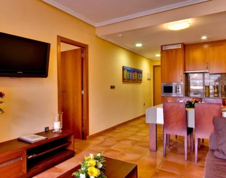De appartementen zijn comfortabel ingericht en beschikken over één slaapkamer, een woonruimte met slaapbank, een keuken, airconditioning en een balkon of terras. De inrichting is functioneel en praktisch – ideaal voor een langer verblijf aan de Spaanse kust.